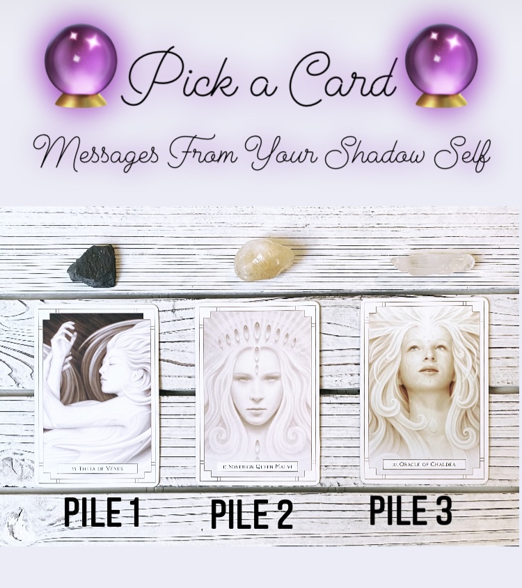 If you chose pile two, the sovereign Queen Maeve card, and the citrine stone, you found your way to your reading! I’d say the first thing your shadow self wants you to know, is that you are the supreme ruler of your own life, and when you hand your power over to others, in a good or bad way, it’s going to make itself known.