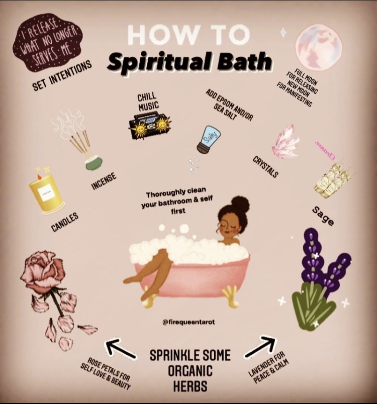 - Spiritual Shower or Bath – A great way to cleanse yourself spiritually and remove any residual and unwanted energies; or throw in some of your newly created Moon Water to really soak up those energies.